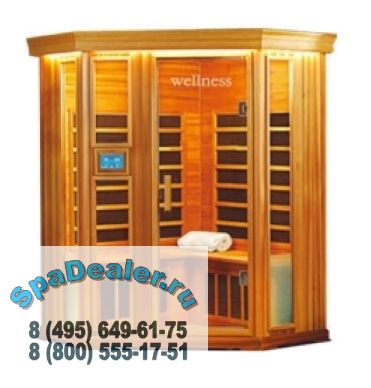 Четырехместная угловая инфракрасная сауна Wellness LH-908DR из канадского кедра, мощность 2130 Вт.