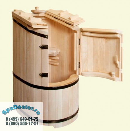 Скошенная крышка данной модели кедровой бочки дает дополнительный обзор, делая процедуру еще комфортнее.