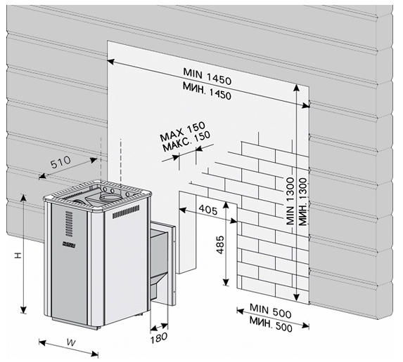 Современая конструкция печи позволяет сократить безопасные расстояния до горючих материалов, что дает гибкость при проектировании сауны.