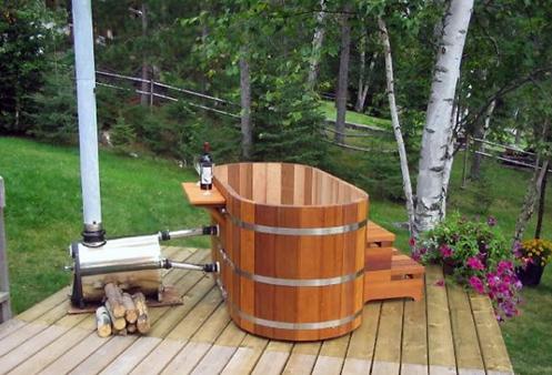 Современные деревянные купели могут быть оборудованы системой подогрева, скамейкой, фильтром воды, гидромассажером, лестницей-подставкой внутри и снаружи.